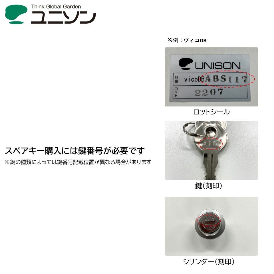 (鍵番号:キーに刻印やポスト内部側面シールに表記があります)